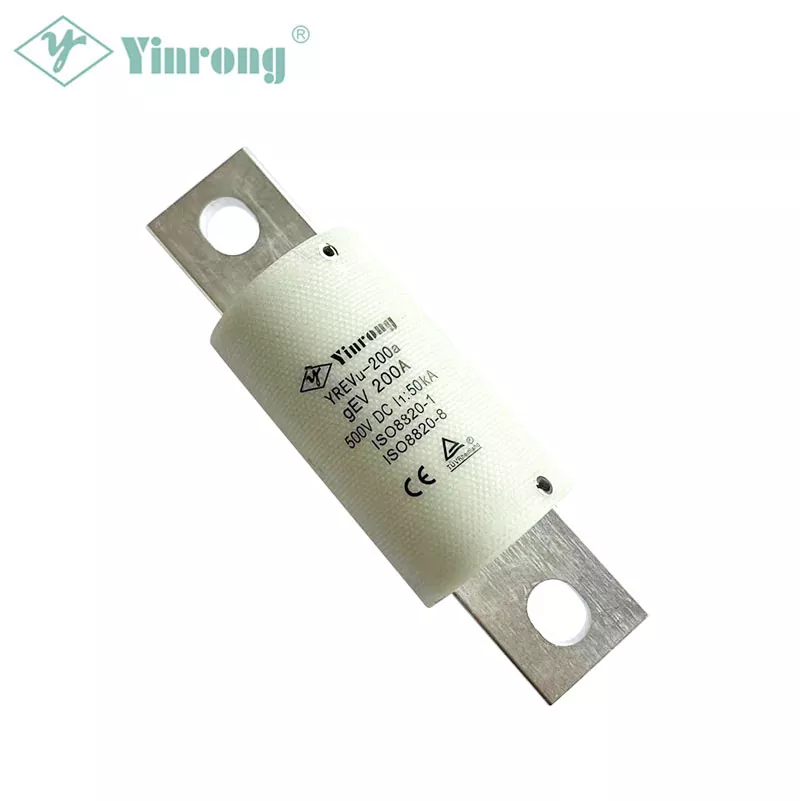 चायना फ्यूज फॅक्टरी गॅलेक्सी फ्यूज (यिनरॉन्ग) 500VDC 200A EV आणि HEV चार्जर फ्यूज सामान्यत: इष्टतम सहाय्यक संरक्षण आणि इलेक्ट्रिकल सिस्टीम आणि हायब्रिड इलेक्ट्रिकल वाहनांमध्ये 500VDC पर्यंत, 110-002 अँपिअरमध्ये इष्टतम सहाय्यक संरक्षण आणि उच्च-कार्यक्षमता संरक्षण देण्यासाठी इंजिनियर केलेले आहेत. YREVu-200a देखील विशेषतः ऑटोमोटिव्ह कंपन आवश्यकता आणि इलेक्ट्रिक वाहन उद्योगाच्या मानकांची पूर्तता करण्यासाठी जमिनीपासून तयार करण्यात आले होते.